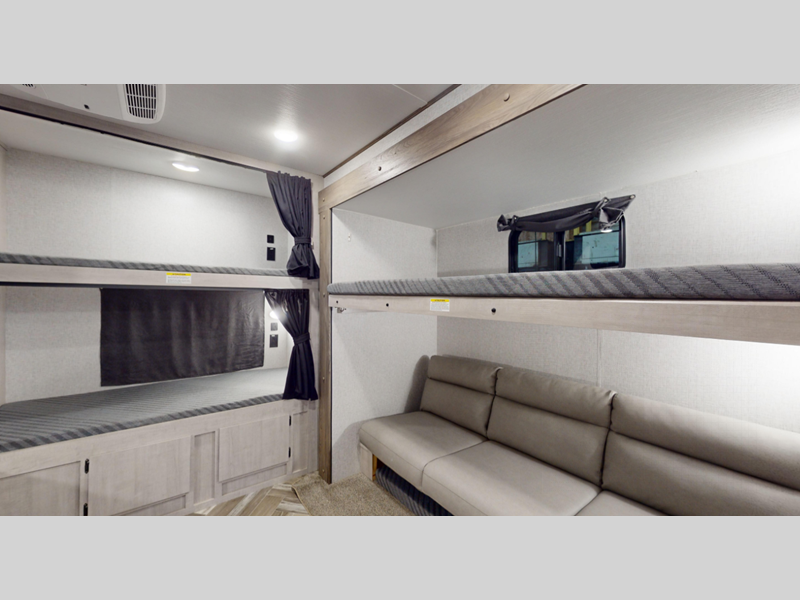 Sleeps 11 Slides 2 Length 36 ft 8 in Ext Height 11 ft 5 in Int Height 6 ft 9 in Hitch Weight 950 lbs Dry Weight 8110 lbs Cargo Capacity 1630 lbs Fresh Water Capacity 45 gals Grey Water Capacity 42 gals Black Water Capacity 42 gals Number Of Bunks 5 Available Beds RV Queen Refrigerator Type 12 Volt Refrigerator Size 10 cu ft Cooktop Burners 3 Shower Size 34" LP Tank Capacity 20 lbs Axle Count 2 Number of LP Tanks 2 Shower Type Radius Similar Floorplans