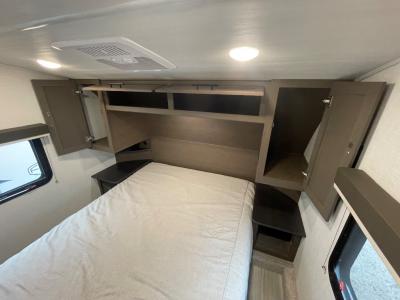 The Cougar Sport structural I-beam frame with stamped steel cross-members and outriggers, plus its AlphaPly roof membrane are what active RVers love about the construction of the Cougar line. The Cougar Sport models are no exception when it comes to a great package, as well as being smaller and lighter weight than their big brother Cougar models. A one-piece, heated and enclosed polypropylene underbelly will add protection against the elements, and the electric stabilizer jacks will provide more stability. On the inside, residential shaker style hardwood cabinet doors and decorative crown molding, plus seamless pressed countertops and an on-demand water heater will make your unit feel even more like home. You are also sure to appreciate the shiplap style decorative accent wall behind the bed, a porcelain foot flush toilet in the bathroom, plus residential kitchen hardware, and so much more.