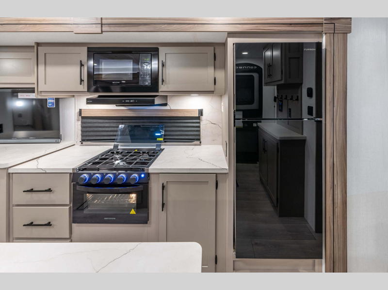 Sleeps 5 Slides 3 Length 38 ft 7 in Ext Width 8 ft Ext Height 11 ft 6 in Int Height 6 ft 10 in Interior Color Mink, Spice Film, Uni Sandgrau Hitch Weight 1060 lbs GVWR 10730 lbs Dry Weight 9330 lbs Cargo Capacity 1400 lbs Fresh Water Capacity 45 gals Grey Water Capacity 64 gals Black Water Capacity 32 gals Tire Size 15" Furnace BTU 30000 btu Available Beds King Refrigerator Type 12V Refrigerator Size 10 cu ft Cooktop Burners 3 Shower Size 30" x 36" Number of Awnings 2 Axle Weight 8270 lbs LP Tank Capacity 20 lbs Water Heater Type Tankless AC BTU 13500 btu TV Info LR LED TV Awning Info 12' & 17' Electric with LED Lights Axle Count 2 Number of LP Tanks 2 Shower Type Standard Electrical Service 50 amp Similar Floorplans