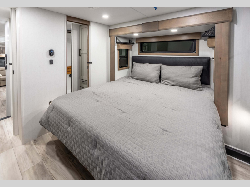 Sleeps 4 Slides 3 Length 34 ft 10 in Ext Width 8 ft Ext Height 12 ft 8 in Interior Color Mink, Pebble Hitch Weight 2270 lbs GVWR 12995 lbs Dry Weight 11080 lbs Cargo Capacity 1915 lbs Fresh Water Capacity 76 gals Grey Water Capacity 90 gals Black Water Capacity 50 gals Tire Size 16" Furnace BTU 35000 btu Available Beds King Refrigerator Type Residential Refrigerator Size 18 cu ft Convection Cooking Yes Cooktop Burners 4 Number of Awnings 1 Axle Weight 8810 lbs LP Tank Capacity 30 lbs Water Heater Type On Demand Tankless AC BTU 15000 btu TV Info LR 43" Smart LED TV Awning Info 16' Power w/LED Light Strip Axle Count 2 Washer/Dryer Available Yes Number of LP Tanks 2 Shower Type Shower w/Seat Electrical Service 50 amp Similar Floorplans